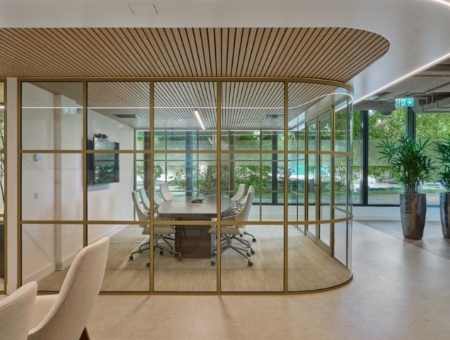 Voor het nieuwe kantoor van Emendo Capital hebben wij bijgedragen aan het creëren van een inspirerende en verfijnde werkomgeving. Bij dit project hebben wij ons gericht op het plaatsen van hoogwaardige metalstud- en glazenwanden, die naadloos aansluiten bij de elegante visie van de interieurarchitect en bijdraagt aan de waarden van het bedrijf. De ruimte ademt de sfeer van een superjacht, met gestroomlijnde vormen en luxe materialen. Het gebruik van glazen wanden met licht messing kozijnen en afgeronde hoeken zorgt voor een vloeiende overgang tussen de verschillende ruimtes, terwijl de metalstudwanden bijdragen aan de structuur en stabiliteit van het interieurontwerp.